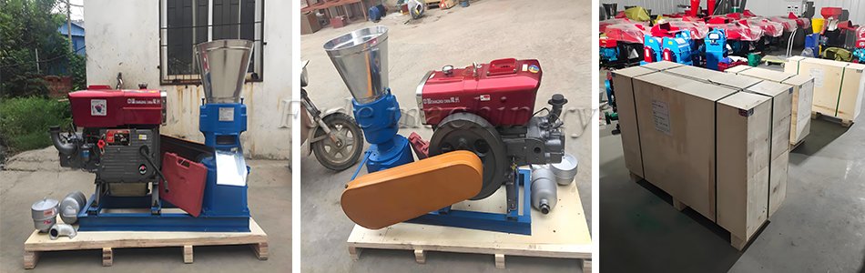 Lately, a set of diesel engine flat die biomass pelletizer (ZLSP300A) for oak wood was manufactured for one of our client in Taiwan. This is a special set with customized color. The default color of ZLSP300A pelletizer machine is blue. It is required to spray it into purple as our client believes that purple is his lucky color.